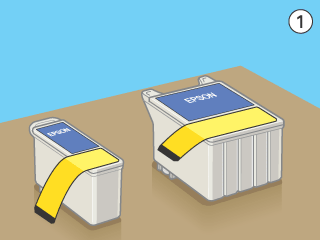 If you have installed an ink cartridge without removing the yellow tape seal, you must remove the cartridge and install a new one. Prepare the new cartridge by removing the yellow tape seal, then install it in the printer.