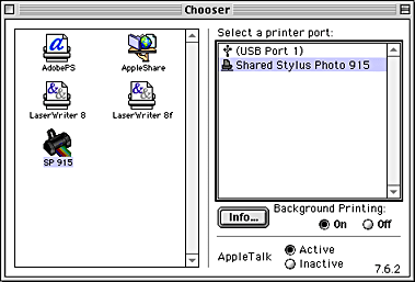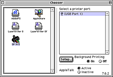 Choose Chooser from the Apple menu. Click the appropriate printer icon and select the printer port that you want to use from the Select a printer port list.