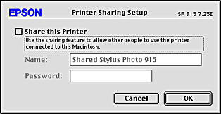 Select the Share this Printer check box, then type the printer name and password information as necessary.