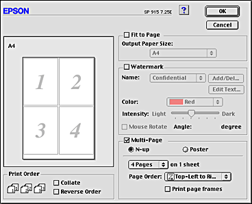 Selecting the Multi-Page check box allows you to choose between the N-up and Poster settings. Refer to the appropriate section below.