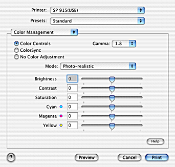 Selecting Color Management from the pop-up menu gives you control over the color matching and adjustment methods provided with the printer driver.