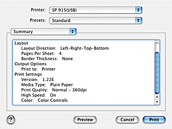 In the Print dialog box with the Summary option selected, you can confirm the current settings in the Print dialog box.