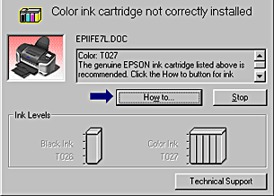 When the ink runs low or out, a How to button will appear. Click How to and EPSON StatusMonitor will lead you step-by-step through the ink cartridge replacement procedure.