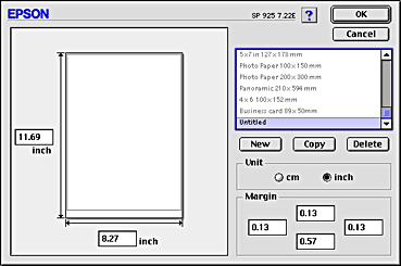 If the appropriate paper size is not included in the Paper Size list in the Page Setup dialog box, follow the steps below to define a new custom paper size.