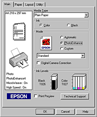 Selecting PhotoEnhance also enables the Digital Camera Correction check box. Select this check box when you are printing photos taken with a digital camera to give your printed images the smooth, natural appearance of photographs taken with a film camera.