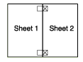 Place Sheet 1 on Sheet 2 and align the cross markers on both sheets, then temporarily tape them from the back side of the paper.