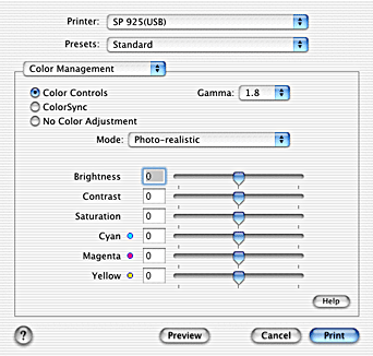 Selecting Color Management from the pop-up menu gives you control over the color matching and adjustment methods provided with the printer driver.