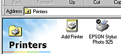 Click the Start button, point to Settings, and click Printers. Make sure that the icon for your printer appears in the Printers window.