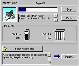 After you send a print job, an EPSON Stylus Photo 925 button will appear in the icon tray. Click this button to open the EPSON Spool Manager.