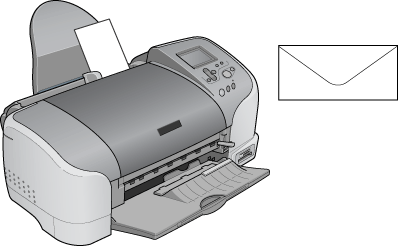 | Select the appropriate envelope size from the available Paper Size settings on the Paper menu (Windows) or Page Setup dialog box (Macintosh). |