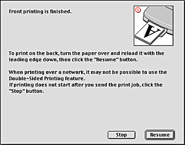 Once the paper is reloaded, click Resume to print the even-numbered pages.