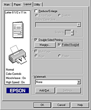 Click OK to return to the Layout menu (Windows) or Print dialog box (Macintosh). Then click OK to save your settings.