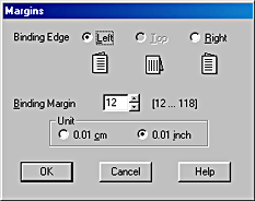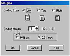 Specify the width of the binding margin using the Binding Margin text box. You can specify any width from 3 mm to 30 mm.
