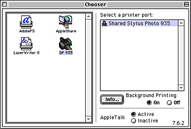 Choose Chooser from the Apple menu. Click the appropriate printer icon and select the printer port that you want to use from the Select a printer port list.