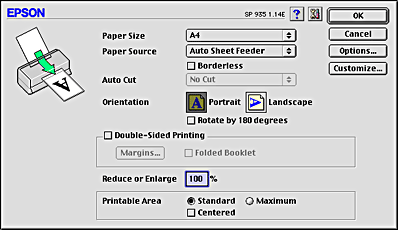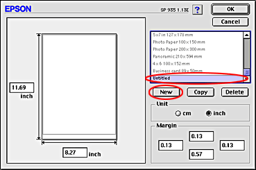If the appropriate paper size is not included in the Paper Size list in the Page Setup dialog box, follow the steps below to define a new custom paper size.