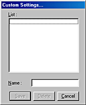 If you change the settings while one of your customized settings is selected in the Custom Settings list, the selection shown in the list returns to Custom Settings. The customized setting that was previously selected is not affected by the change. To return to your customized setting, simply reselect it in the list.