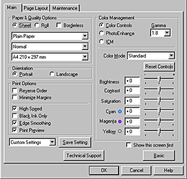 For use with the color matching and image enhancement methods provided by the printer driver. When you select Color Controls, additional settings appear under Color Management, allowing you to select a Color Mode setting and to adjust the Color Enhancement sliders.