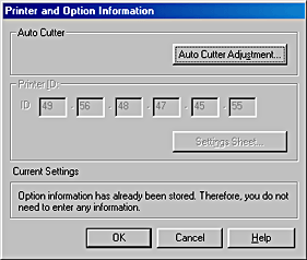 Depending on the configuration of your system, the information displayed in the Printer and Option Information dialog box may be updated automatically, or may need to be entered manually.