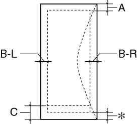 The minimum top margin is 3.0 mm (0.12"). When loading multiple sheets of EPSON Photo Quality Glossy Film, the minimum top margin is 30.0 mm (1.2"). |