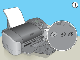 The printer will print an operation check page which includes the version of your printer's ROM, the ink counter code, and a nozzle check pattern.