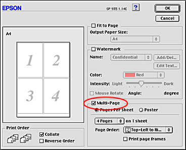 | Select Pages Per Sheet as the Multi-Page setting on the Page Layout menu. |