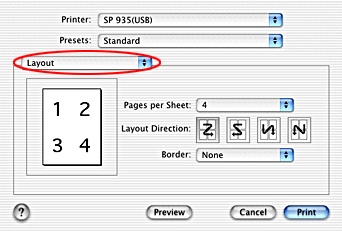 | Choose Layout from the pop-up menu in the Print dialog box. |