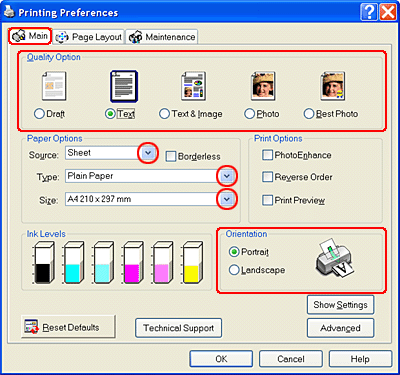 Click the Main tab, then make the Quality Option setting. See the following section for details on the Quality Option settings.