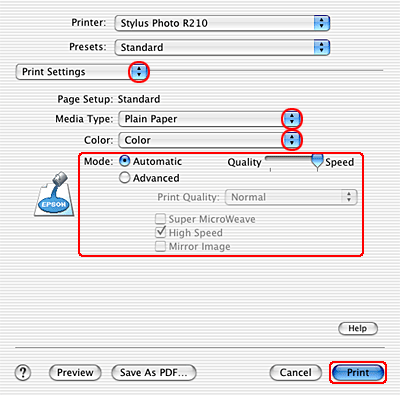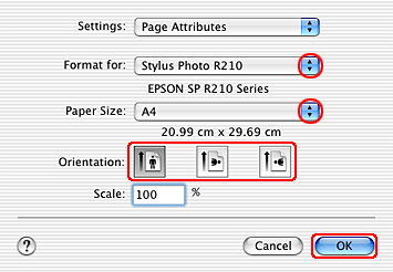 Make the appropriate Format for setting. When printing with standard margins, select Stylus Photo R210.