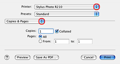 The Copies & Pages settings available are a standard feature of Mac OS X. See your operating system's documentation for details.