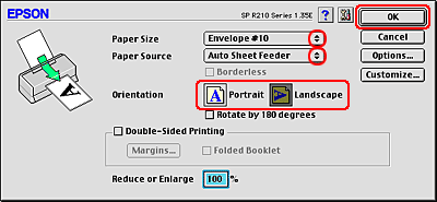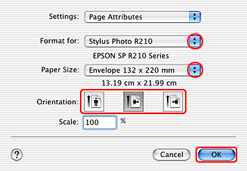 | Select the appropriate envelope size as the Paper Size setting. |