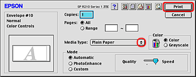 Select Plain Paper as the Media Type setting, then make the appropriate Color and Mode settings. |