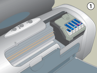 Be sure to always install an ink cartridge into the printer immediately following the removal of the current ink cartridge. If the ink cartridge is not installed promptly, the print head may dry out, rendering it unable to print.