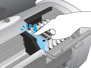 If the carriage cover does not close or the print head carriage does not move to its home position, open the carriage cover and push the ink cartridges down until they click into place.