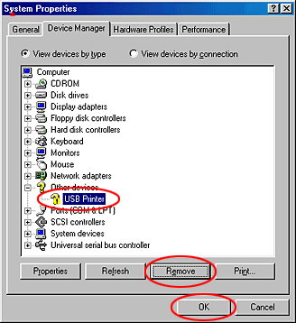 If you canceled the plug-and-play driver installation in Windows Me or 98 before the procedure was complete, the USB printer device driver or the printer software may be incorrectly installed. Follow the directions below to ensure that the driver and printer software are installed correctly.