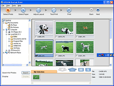 Double-click the EPSON File Manager icon on the desktop, select the images to use, then click the Advanced Photo Print icon in the upper part of the EPSON File Manager window.
