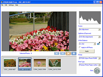 EPSON RAW Print lets you print photos from a supported digital camera in the RAW file format.