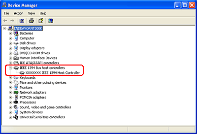 Click on the IEEE 1394 Bus host controllers option, and check if the IEEE 1394 Host Controller is identified. If the IEEE 1394 Host Controller is identified, your Windows operating system provides the OHCI compliant IEEE 1394 support.