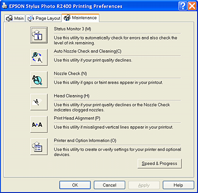 Click the Maintenance tab, then click the Printer and Option Information button.