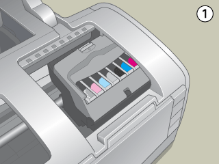 Be sure to always install an ink cartridge into the printer immediately following the removal of the current ink cartridge. If the ink cartridge is not installed promptly, the print head may dry out, rendering it unable to print.