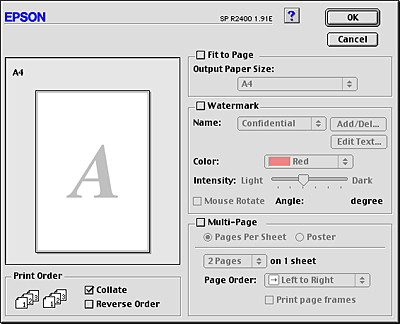 Allows you to choose between the Pages Per Sheet and Poster settings. Pages Per Sheet