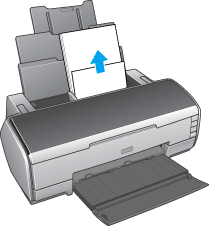 The printable side of the paper is face up in the sheet feeder.