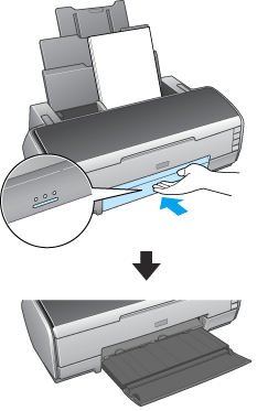 If you have loaded the paper too far into the printer, the printer cannot feed the paper correctly. Turn the printer off and gently remove the paper. Then turn the printer on and reload the paper properly.