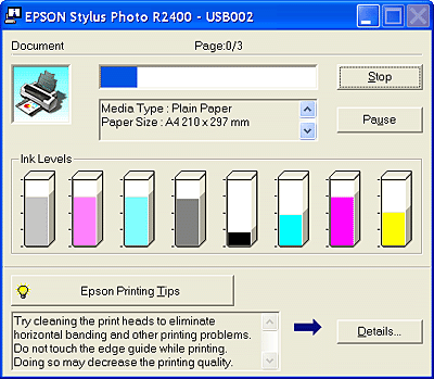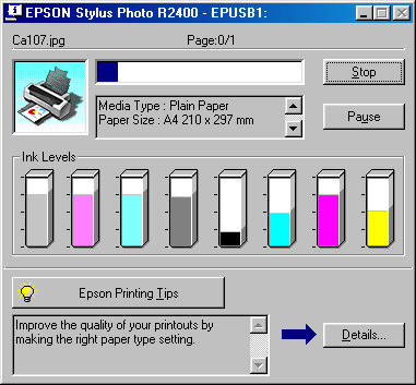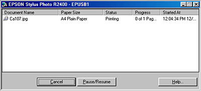 After you send a print job, an EPSON Stylus Photo R2400 button will appear in the icon tray. Click this button to open the EPSON Spool Manager.