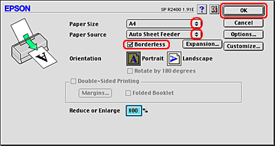 This printer allows you to print without margins on all four sides of the paper. Follow the steps described below for Borderless printing.