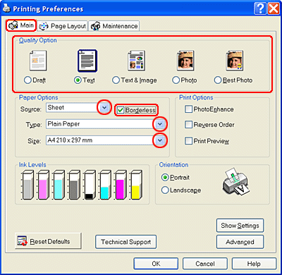 After you have loaded the media, change your printer driver settings for Borderless printing.