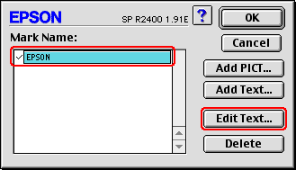 | To use an image file as a watermark, click Add PICT. Specify the desired image file, then click Open. |