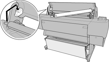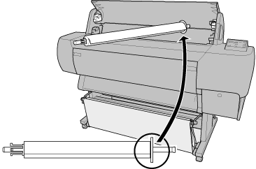 When installing the roll paper onto the spindle, follow the steps below. To remove roll paper or empty roll paper cores, see Removing the roll paper from the spindle.
