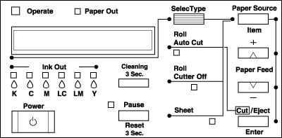 Press the Paper Source button repeatedly until the Roll Auto Cut light or Roll Cutter Off light is on.