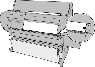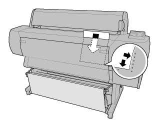 Press the Pause button. The print heads move and the sheet automatically feeds into the printing position. READY appears on the LCD panel.