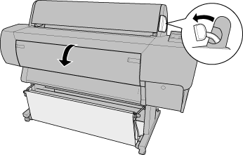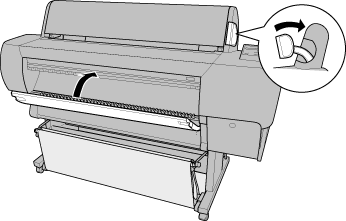 Make sure that the Operate light or Pause light is not flashing, then set the paper lever to the released position. The Paper Out light turns on and LOAD PAPER appears on the LCD panel. Open the front cover.
